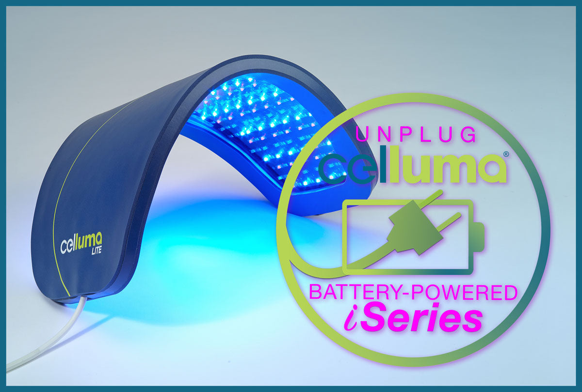 The 3-mode battery-powered Celluma iLITE delivers the same powerful results as the Celluma iPRO in a more compact size ideally suited for travel. While designed specifically for positioning over smaller areas, such as elbows, wrists and knees, the Celluma iLITE can be used anywhere on the body, including over the face to treat facial skin conditions, acne and pain (pictured here in the Acne mode).